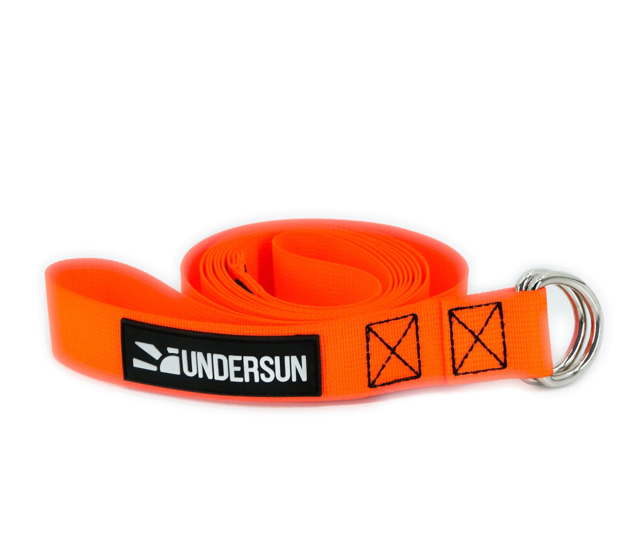 The Undersun Outdoor Anchor is made from an extremely strong and durable nylon webbing, with steel rings for securing the strap, and heavy-duty stitching. At 7.5 feet long, and two different anchor loops, you have the flexibility to use this in almost any environment (except maybe the moon). One loop is close to the buckle when you want to secure the band close to your anchor position. The other loop is at the end of the strap when you might need more room, like you would when anchoring overhead, to say a tree branch.